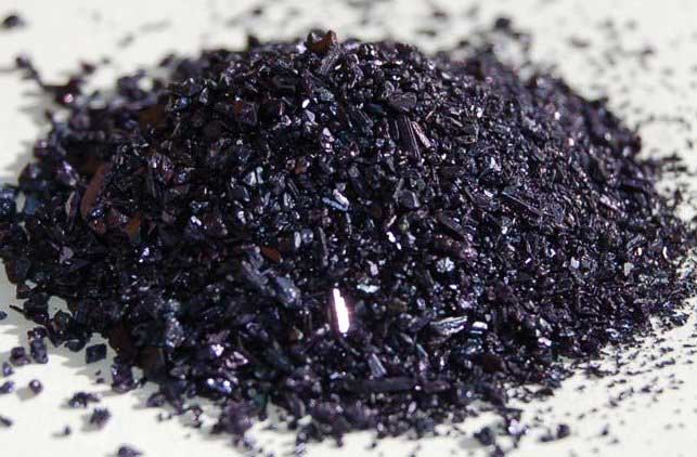 Le permanganate de potassium est vendu sous la forme d'une poudre foncée, presque noire. Il devient bleu-rouge sombre quand on le mélange avec de l'eau. C'est un antiseptique et un désinfectant utile.