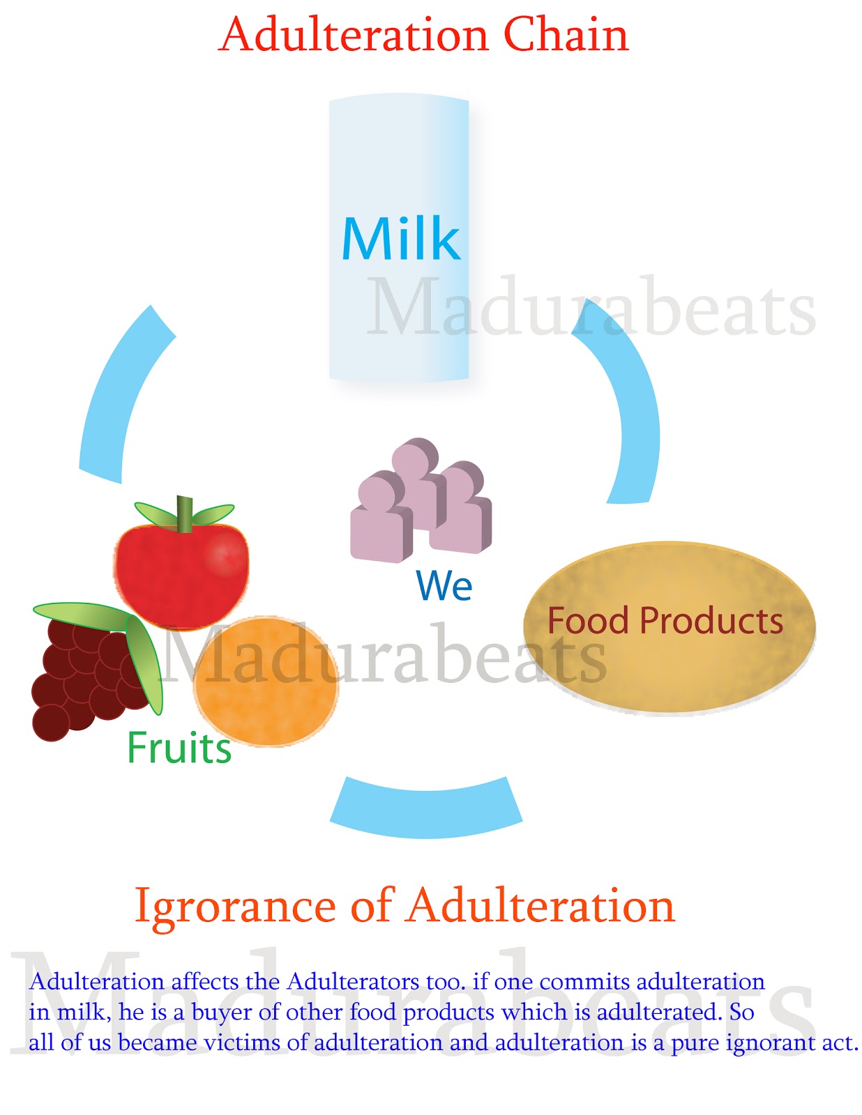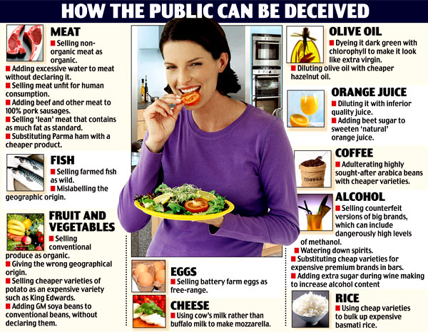 2. L'adultération est une pratique frauduleuse consistant en l'ajout d'un produit de moindre valeur à un autre produit, qui est alors vendu ou donné pour ce qu'il n'est pas (par exemple ajout d'eau dans le lait, ou ajout d'une huile de mauvaise qualité dans une huile d'olive vendue comme de bonne qualité).