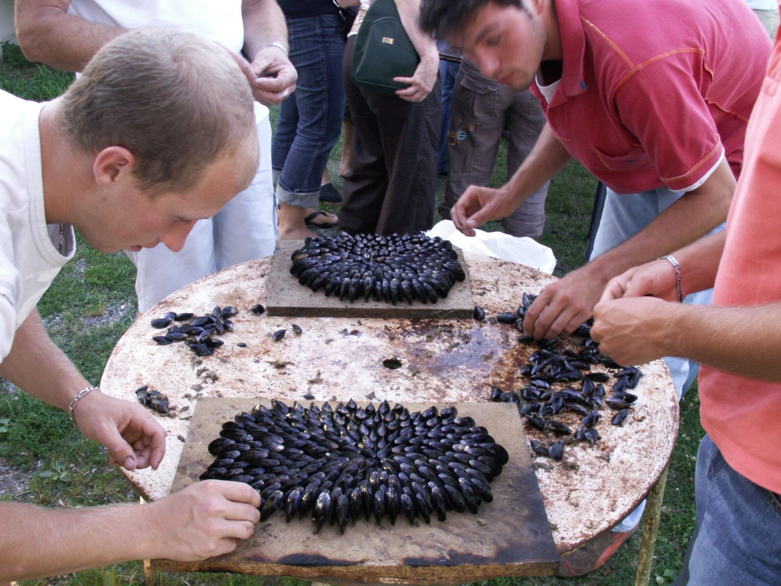3. Préparation culinaire de moules grillées au moyen d'épines de pin, originaire de la Charente-Maritime.