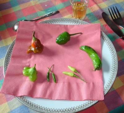 2. Le piment oiseau ou piment martin (Capsicum frutescens) est un petit piment rouge ou vert. Il fait partie de la famille des Solanacées qui compte quelques 2 500 espèces. Dans l'échelle de Scoville simplifié, qui mesure de la force des piments, il est classé à un degré 8 (torride), légèrement plus fort que le piment de Cayenne. Autrefois, avant que les traitements chimiques soient utilisés, ces piments se trouvaient en abondance dans les champs de canne. Les oiseaux (en étant friands) mangeaient les piments et en rejetaient les graines dans leurs fientes. C'est probablement de cette forme de dissémination que son nom proviendrait. Le nom « martin » serait issu de celui du martin triste (Acridotheres tristis), oiseau de la famille des Sturnidae.