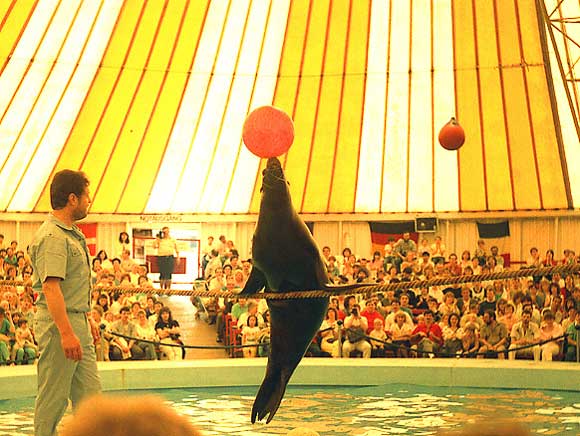 animal de cirque : être vivant, souvent domestique, entraîné et présenté dans des spectacles de cirque, où il exécute des numéros variés, généralement en interaction avec des artistes humains.