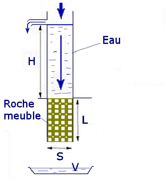 6. La conductivité hydraulique (K) est une grandeur qui exprime l'aptitude d'un milieu poreux à laisser passer un fluide sous l'effet d'un gradient de pression. C'est une grandeur dépendant à la fois des propriétés du milieu poreux où l'écoulement a lieu (granulométrie, forme des grains, répartition et forme des pores, porosité intergranulaire), des propriétés du fluide qui s'écoule (viscosité, densité) et du degré de saturation du milieu poreux. La conductivité hydraulique, qui a la dimension d'une vitesse [ L?T-1], est généralement exprimée en mètres par seconde (m/s).