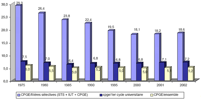 1. En France, les classes préparatoires aux grandes écoles ( CPGE ) sont des filières d'enseignement supérieur sélectives et exigeantes. Elles sont généralement hébergées dans les lycées. Communément appelées « classes prépas » ou « prépas » et pour la plupart publiques, elles sélectionnent sur dossier les lycéens en classes de terminale et préparent en un à trois ans , [ D 1] les étudiants aux concours d'admission à certaines grandes écoles ( écoles normales supérieures ( ENS ) , grandes écoles de commerce, écoles d'ingénieurs et écoles vétérinaires, notamment ) .