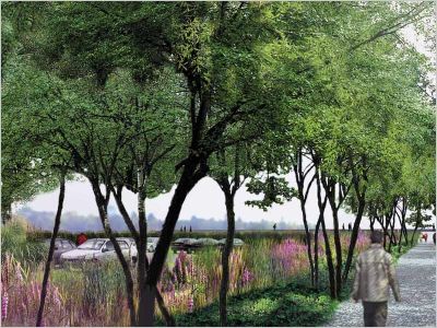 1. Terrain ou aménagement destiné au stationnement des automobiles.