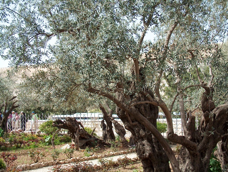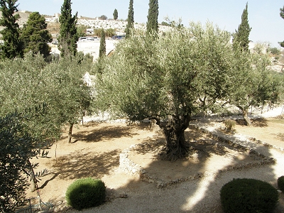 1. Dans les évangiles synoptiques (Marc, Matthieu, Luc), Gethsémani ou Gethsémané (en grec ancien : ?????????, Geths?mani, en hébreu : ?'? ?????, en araméen : ?'? ????, Gat ?m?nê, « le pressoir à huile ») est le lieu où Jésus a prié avant son arrestation (« Heure sainte »). Il s'agit d'un grand domaine qui, durant les fêtes de pèlerinages, abrite la foule qui ne sait trop où loger. Dans l'évangile selon Jean, l'épisode de la prière des disciples de Jésus n'est pas rapporté et Jésus est arrêté dans un jardin dont le nom n'est pas donné, mais qui est mentionné après que Jésus et ses disciples sont allés « de l'autre côté du torrent du Cédron ». Sur la base de ces informations de l'évangile de Jean, il a été supposé qu'il s'agissait d'une oliveraie située au pied du mont des Oliviers à Jérusalem identifiée au IVe siècle sous l'impulsion de sainte Hélène, la mère de l'empereur Constantin Ier et qui aujourd'hui porte ce nom.