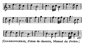 3. Le menuet est une danse traditionnelle de la musique baroque, à trois temps et à mouvement modéré, gracieuse et noble. D'un point de vue formel, le menuet comporte deux sections avec reprise chacune. C'était une des danses préférées de Louis XIV et de sa cour. Ce type de danse pourrait avoir pour origine le branle du Poitou.