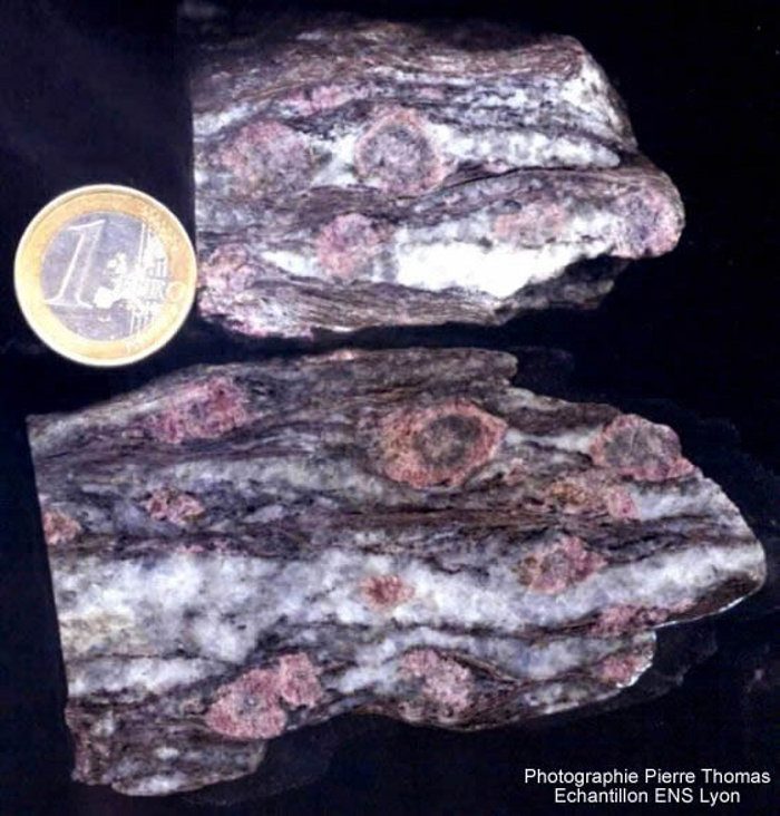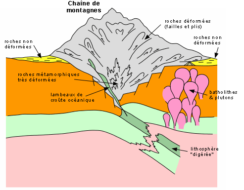 1. (Géologie) Qui a été profondément modifié dans sa structure (par la pression ou la température), en parlant d'une roche, d'un terrain.