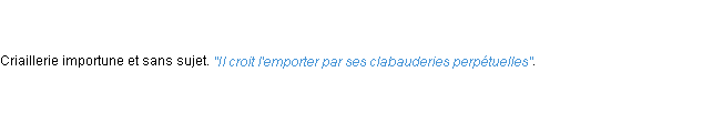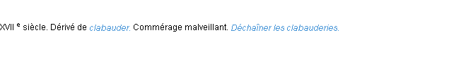 Le public aussitôt, s'imaginant qu'il [un abbé hué par les spectateurs d'un théâtre] cédait à l'orage et battait en retraite, redoubla ses clabauderies.