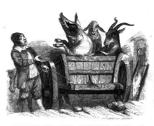 Sire, dit alors maître Ogier, permettez que je déduise de ceci une affabulation. Ces passereaux sont vos nobles, cette vigne est le peuple. Les uns banquètent aux dépens de l'autre. Sire, qui gruge le vilain gruge le seigneur. [?]