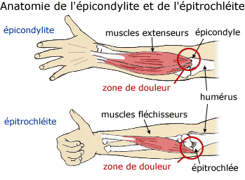 L'épicondylite est surtout connue sous le terme (Populaire) de ''tennis elbow''.