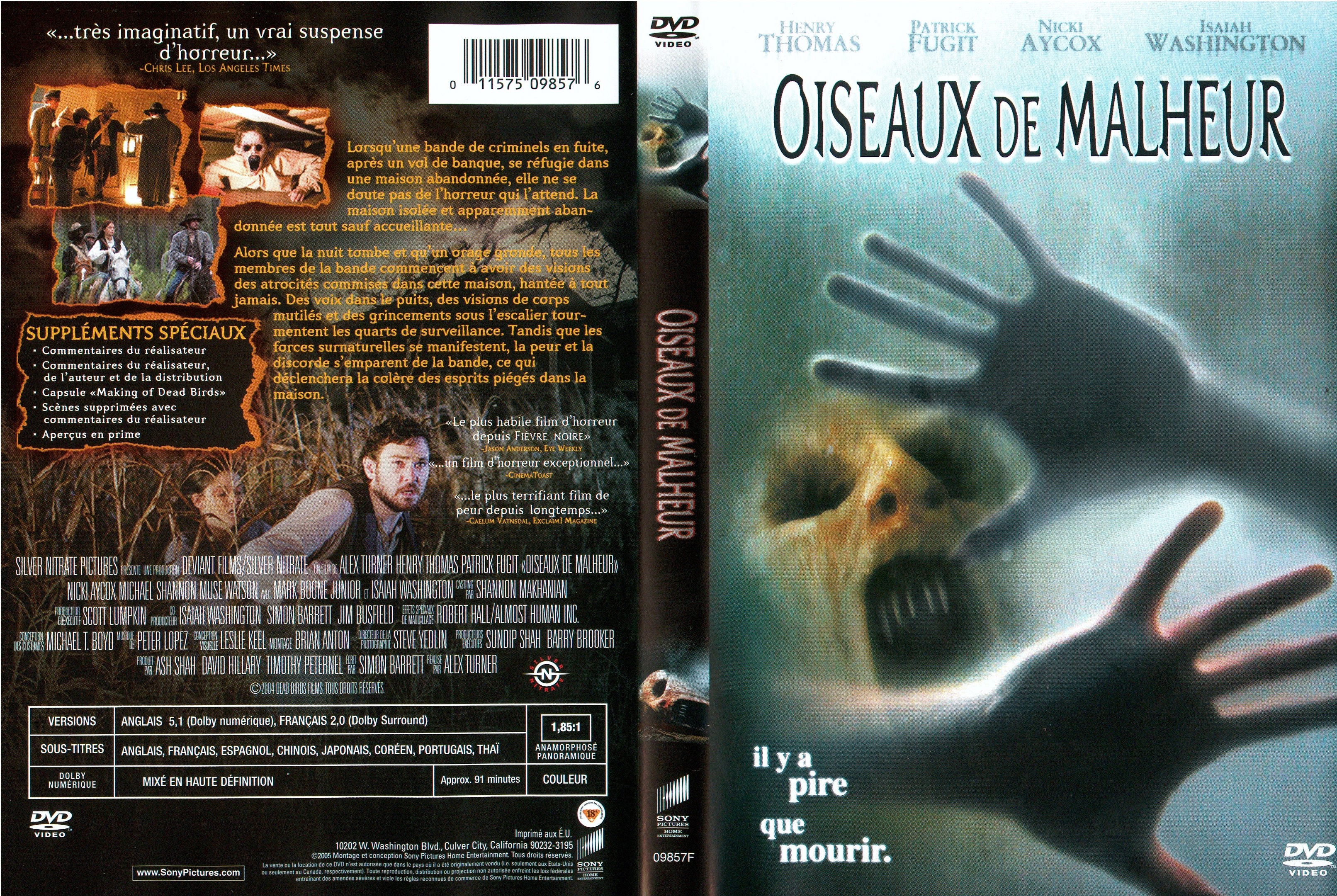 | (Figuré) Annonciateur de catastrophe.Oiseaux de malheur, annonciateurs de catastrophes, chauffés à blanc par la certitude du pire, ils provoquaient une admiration un peu inquiète chez certains et, chez la plupart, l?indifférence, l?ennui, on leur préférait les littérateurs académiques, surtout quand ces derniers s?avisaient de parer leurs écrits d?audaces sans danger pour le lecteur. ? (Jean-Luc Moreau, Dominique de Roux, page 169, 1997, L?Âge d?Homme)Va-t?en, pour l?amour de Dieu, oiseau de malheur, il va y avoir du grabuge si on me voit avec toi. ? (Milka Bayitch-Podereguine, Le point du jour, page 87, 1994)Partout ils sont considérés comme des oiseaux de malheur et partout ils évoquent des cimetières au clair de lune, des souterrains mystérieux, hantés de revenants, des lieux maudits. ? (Norbert Casteret, Mémoires d?une chauve-souris, 1961, Librairie académique Perrin) [...]