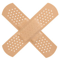 5. Un sparadrap, du latin spargere, « étendre », et du français « drap », « étoffe », est une bande adhésive, présentée en rouleau, à découper et permettant de fixer des compresses, des pansements, des drains ou des cathéters sur la peau. Au Québec il est souvent appelé « plasteur », de l'anglais plaster.