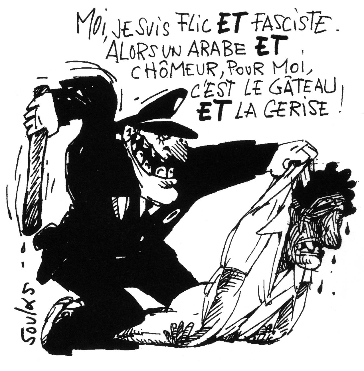 Avant de remonter au front : « Les vieux cons de fachos comme vous, ils tisent de l'alcool et jouent aux boules ! Leurs enfants, ils font pareil! Nous, nos pères, tu ne les trouve pas dans les cafés ... »