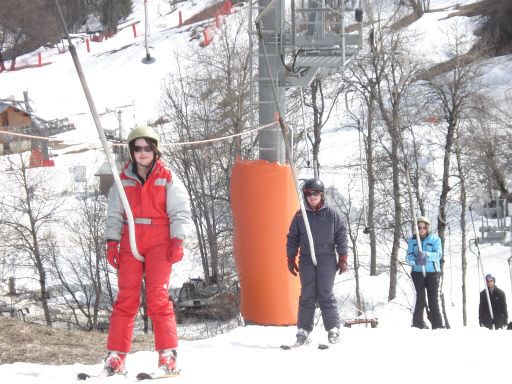 4. Un téléski , un remonte-pente , ou familièrement un tire-fesses , est une remontée mécanique pour skieurs. Son principe consiste à tirer le skieur vers le sommet en le laissant glisser sur la neige tout le long du terrain, au moyen d'une perche tractée par un câble tournant. Le plus souvent le skieur passe entre ses jambes un agrès ( perche ou enrouleur ) généralement terminé par une rondelle. Ce type d'installation nécessite donc l'aménagement et l'entretien pour le ski de l'ensemble de l'itinéraire situé directement sous le câble montant.