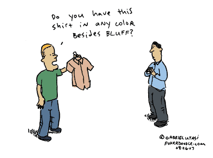 5. (Jeux) Action de feindre posséder un jeu différent de la réalité, dans le but d'induire en erreur les autres joueurs.