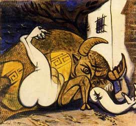 6. Dans la mythologie grecque, Pasiphaé (en grec ancien ??????? / Pasipháê, « celle qui brille pour tous »), fille d'Hélios et de Persé, soeur d'Éétès et de Circé, est l'épouse de Minos (roi de Crète), et notamment la mère du Minotaure.