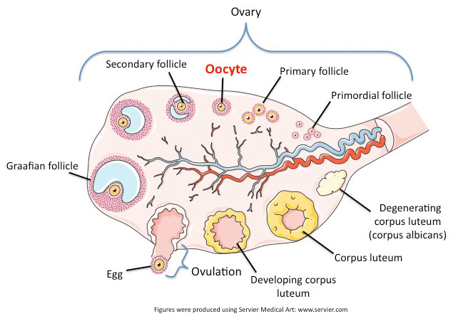 2. (Biologie) Cellule germinale femelle située dans l'épaisseur du parenchyme ovarien et dont la maturation nucléaire et cytoplasmique l'amène à l'état d'ovule fécondable.